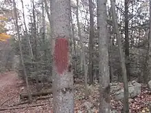 Trail markings are visible along the trail to assist travelers.