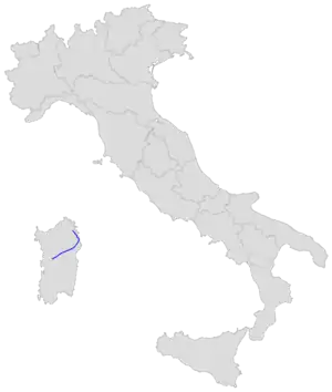 This freeway is connected to the Strada statale 131 Charles Felix, it links Abbasanta (a village near Oristano) with Olbia, via Nuoro, crossing the hinterland mountainous regions of the island. It has a length of 148 km.