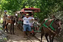 In the 21st century, horsecars are still used to take visitors along the 9-kilometre (5.6 mi) tour of the 3 cenotes from Chunkanán near Cuzamá Municipality in the state of Yucatán.[7][8] Disneyland theme park in Anaheim, Cal., has operated a short horsecar line since it opened in July 1955. Similarly, Disney World theme park in Orlando has operated a short horsecar line since it opened in Oct 1971. At both parks, they run from 8-9am to 1:30-2pm, and, depending on the season, sometimes 5-7pm.