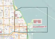 Streeterville is a neighborhood in the Near North Side community area of Chicago, Illinois, United States, north of the Chicago River. It is bounded by the river on the south, the Magnificent Mile portion of Michigan Avenue on the west, and Lake Michigan on the north and east, according to most sources, although the City of Chicago only recognizes a small portion of this region as Streeterville. Thus, it can be described as the Magnificent Mile plus all land east of it. The tourist attraction of Navy Pier and Ohio Street Beach extend out into the lake from southern Streeterville.[1][2] To the north, the East Lake Shore Drive District, where the Drive curves around the shoreline, may be considered an extension the Gold Coast. The majority of the land in this neighborhood is reclaimed sandbar.[3]
