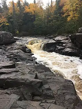 Today, the Sturgeon River Gorge Wilderness is a roadless unit within the managed Ottawa Forest. The wilderness centers on the Sturgeon River, a Wild and Scenic River where it flows through and along the border of this wilderness. Along the wilderness's northeastern edge, the Sturgeon River flows through the Sturgeon River Gorge, a 300 feet (91 m) deep canyon, and the approximately 15-foot (4.6 m) waterfall, Sturgeon Falls. After leaving the wilderness, the Sturgeon River discharges itself into Portage Lake and, ultimately, into Lake Superior.[2]