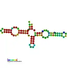 - ↑ Weinberg Z, Barrick JE, Yao Z, et al. (2007). "Identification of 22 candidate structured RNAs in bacteria using the CMfinder comparative genomics pipeline". Nucleic Acids Res. 35 (14): 4809–4819. doi:10.1093/nar/gkm487. PMC 1950547. PMID 17621584.
