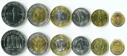 In 1956, coins were introduced in denominations of 1mm, 2mms, 5mms and 10mms, 2 PT, 5 PT and 10 PT. The millim denominations were struck in bronze, whilst the piastre denominations were in cupro-nickel. The 2mms, 5mms and 10mms were scallop shaped, although a round 5mms was introduced in 1971. The 1mm and 2mms were last struck in 1969, the last 5 millim in 1978. In 1983, brass 1 PT, 2 PT and 5 PT, a reduced size 10 PT and a cupro-nickel 20 PT were introduced. In 1987, aluminium-bronze 1 PT, 5 PT, 10 PT, 20 PT, 25 PT and 50 PT and LS 1 were introduced, with the 25 PT and 50 PT being square and octagonal in shape, respectively. In 1989, stainless-steel 25 PT and 50 PT and LS 1 were issued. This is the general pattern, in addition to these coins there are collector-oriented issues and various oddities. See popular coin catalogues for details.