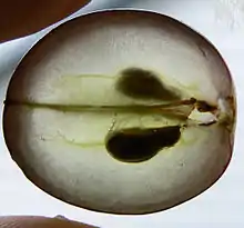 The sugars in grapes are stored in the pulp along with water, organic acids and other compounds