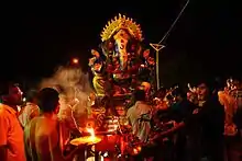 Sukhakarta Dukhaharta (literally "harbinger of happiness and dispeller of distress",[1] Marathi: सुखकर्ता दु:खहर्ता, sukhakartā duḥkhaharta), also spelled as Sukhkarta Dukhharta, is a popular Marathi arati, song or bhajan (devotional song) dedicated to the Hindu god Ganesha, composed by the saint Samarth Ramdas (1608 - 1682 CE).[2][3] It is included in the "most standard and almost universal" aarti songs sung at the end of Puja (worship rituals) of Ganesha in Maharashtra, especially in his festival Ganesh Chaturthi as well as in Ganesha temples in the region.[1][3][4]