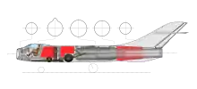 The Su-17 was designed to closely match the theoretical TsAGI calculations for supersonic performance. The aircraft had a 50° swept wing fitted with air brakes and boosted controls. A unique feature was that in addition to an ejection seat, the entire nose section of the aircraft could separate from the rest of the airframe.[1] The project was canceled with no flights due to problems with wing structure, ongoing difficulties with the development of the TR-3 engine, and the closure of the Sukhoi OKB. The only example was eventually used as a gunfire target.[2]