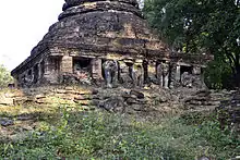 Wat Aranyik (Thai: วัดอรัญญิก) was one of the first temple built by Tai in and around Sukhothai. The architectural remains indicate that the temple was built at beginning of the 13th century. Although the typical Khmer stonework are present everywhere. The buildings are arranged rather scattered over a relatively extensive grounds.[12] There is a small Khmer style ordination hall on a high stone pedestal with eight Bai sema on the separate stone pedestals. Scattered on the wooded grounds are the remains of many unidentifiable stone structures possibly stupa or vihara. Normally monk residence were built from non-durable materials and are therefore no longer discernible. However, at Wat Aranyik there are some small cells made of stone, which could be perhaps once been monk residence.