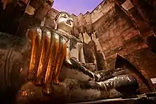 Originally, Sukhothai was a Khmer empire's outpost named Sukhodaya.[2][3][4] During the reign of Khmer Empire, the Khmers built some monuments there, several of them survived in Sukhothai Historical Park such as the Ta Pha Daeng shrine, Wat Phra Phai Luang, and Wat Sisawai.[5] About some 50 kilometer north of Sukhothai is another Khmer military outpost of Si Satchanalai or Sri Sajanalaya.[6][7]
