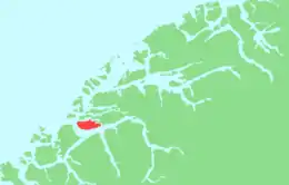 Sula (Urban East Norwegian: [ˈsʉ̀ːɽɑ] ⓘ) is an island in Sula Municipality in Møre og Romsdal county, Norway. The island (and municipality) are part of the Ålesund Region surrounding the city of Ålesund. The 59-square-kilometre (23 sq mi) island lies north of the Storfjorden, northeast of the Sulafjorden, and south of the Borgundfjorden. The island is connected to the nearby island of Uksenøya by a short bridge on the European route E39 highway. The island is mountainous, with almost all residents living in the northern and eastern shores. The southwestern half of the island is mountains, the highest being the 776-metre (2,546 ft) tall mountain Vardane. Most residents live in the municipal centre, Langevåg, in the north, and Fiskarstrand and Mauseidvåg are other large population centres. There are two churches on the island: Langevåg Church and Indre Sula Church.[1]