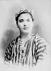 Abu Bakar visited Ottoman Turkey during his European tour in 1866, where he met Sultan Abdülaziz. The Sultan presented Ruggyyah Hanum, a Circassian princess to Abu Bakar as a gift. Ruggyyah Hanum married Ungku Abdul Majid, Abu Bakar's brother after she arrived in Johor. After Ungku Majid's untimely death, Ruggyyah Hanum was later remarried to Dato Jaafar (who had accompanied Abu Bakar during his 1866 trip).[44] During his second visit to England in August 1878, Abu Bakar wrote to Colonel Anson from South Kensington of his wishes to visit European royalties in Paris, Vienna and Italy. He managed to visit Paris and Vienna, and was even given a warm reception by Prince Henry of Liechtenstein before returning to Johor. Three years later, he visited Prussia, where he was conferred the Royal Prussian Order of the Crown.[45] He made two separate European tours in 1891 and 1893 with a personal physician by his side, during which he met Emperor Francis Joseph, King Umberto, Pope Leo XIII and Sultan Abdul Hamid II, and was conferred the awards of Commander of the Cross of Italy, Imperial Order of the Osmans (Turkey) and the Commander of the Cross of Saxe-Coburg and Gotha.[46]