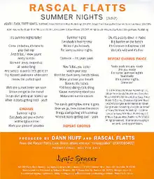 - ↑ Bjorke, Matt (2009-05-20). "Rascal Flatts - "Summer Nights"". Roughstock. Retrieved 2009-05-27.