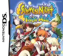 Summon Night: Twin Age (サモンナイト ツインエイジ 精霊たちの共鳴(こえ), Samon Naito Tsuin'eiji Seirei-tachi no Kyōmei (koe)) is an action role-playing game in the Summon Night series for the Nintendo DS. Summon Night uses a party based system of three characters at a time and a fully touch-based control system. The game was developed by Flight-Plan and published by Atlus. It was released in Japan on August 30, 2007 and in North America on June 3, 2008.[1]