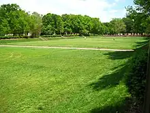 The Sunken Garden (often erroneously referred to as the Sunken Gardens[1]) is the central element of the Old Campus at the College of William & Mary. The garden consists of a long stretch of grass, lower than the surrounding area, that runs west from the rear of the Wren Building to Crim Dell pond. The area is very popular for students wanting to study outside or play games like Ultimate. Functionally, it is similar to a university quadrangle.