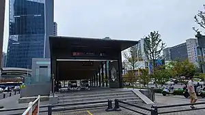 Suoshanqiao West (Chinese: 索山桥西) is a station of Line 3 and Line 5 of the Suzhou Metro.[1] The station is located in Huqiu District, Suzhou. It has been in use since December 25, 2019; when Line 3 first opened to the public,[2] and acts as one of three interchanges between the two lines.