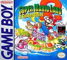 - ↑ Known in Japan as Super Mario Land 2: 6-tsu no Kinka (スーパーマリオランド2 6つの金貨, Sūpā Mario Rando Tsū Muttsu no Kinka, lit. "Super Mario Land 2: 6 Golden Coins")
