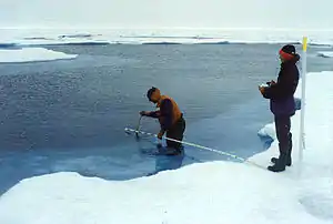 - ↑ Eicken, H. (1994). "Structure of under-ice melt ponds in the central Arctic and their effect on, the sea-ice cover". Limnology and Oceanography. 29 (3). doi:10.4319/lo.1994.39.3.0682.