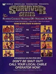 - 1 2 3 4 5 "Survivor Series 1988 results". pWwew – Everything Wrestling. Retrieved June 10, 2008.