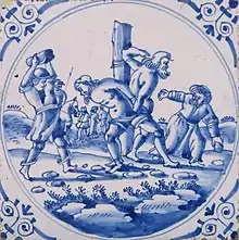 In early 1611, Gentileschi was raped by Agostino Tassi, whom her father, Orazio Gentileschi, had hired to teach Artemisia, and a second man, Cosimo Quorli.[11]: 162–163 [18] In Tassi's ensuing trial, Artemisia was subjected to thumbscrew, Tassi was convicted but his conviction later overturned, and Gentileschi's reputation was ruined.[11]: 163 During the trial she testified that Tassi and Quorli pressured her for sex, accusing her of already having had sex with a servant, a further similarity to Susanna's story.[11]: 165 Garrard has speculated that Gentileschi may have already been receiving unwanted attention from Tassi during the period she painted the 1610 portrayal.[15] She points out that the painting is not about rape but about the threat of rape.[15]: 165 According to Christiansen and Mann, Gianni Papi identified the elders as having been modeled after Tassi and Orazio.[14]: 298 Garrard points out that the Elder on the left in her painting is a "thick-haired younger man", which was "highly unusual in Susanna pictures"; Tassi was in his thirties at the time of the rape.[18] Gina Siciliano points out that the elders "bore the dark curls of Agostino Tassi and the balding sleaziness of Cosimo Quorli."[19] In 1612 Gentileschi completed Judith Slaying Holofernes which some scholars and commenters have interpreted as visual revenge.[13][19]