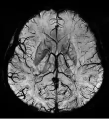 - ↑ Mittal S; Wu Z; Neelavalli J; Haacke EM (February 2009). "Susceptibility-weighted imaging: technical aspects and clinical applications, part 2". AJNR Am J Neuroradiol. 30 (2): 232–52. doi:10.3174/ajnr.A1461. PMC 3805373. PMID 19131406.