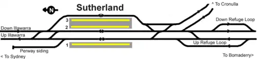 Sutherland railway station is located on the Illawarra line, serving the Sydney suburb of Sutherland. It is served by Sydney Trains T4 line services and NSW TrainLink South Coast line services.