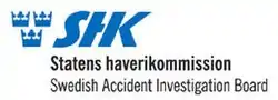 The Swedish Accident Investigation Authority (Swedish: Statens haverikommission, or SHK, in English formerly the Swedish Accident Investigation Board) is a Swedish government agency tasked with investigating all types of serious civil or military accidents that can occur on land, on the sea or in the air. Incidents are also to be investigated if there was a serious risk of an accident.[2] Its headquarters are in Stockholm.[3]