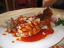 A speciality of Shandong province, in particular the city of Jinan,[13] the Yellow River carp is prepared by making diagonal slices partway through its flesh. It is next coated in corn flour then deep fried causing the fish to curl and the slices to open out. Finally a sweet and sour sauce is poured over the cooked fish. This is one of the distinctive dishes typical of Lu Cuisine.