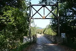 The Sylamore Creek Bridge is a historic bridge in east central Stone County, Arkansas, just south of the Ozark-St. Francis National Forest. It carries County Road 283 across Sylamore Creek, a short way west of Arkansas Highway 9 and north of the Holiday Mountain Resort in Allison. It is a wire-cable suspension bridge, with steel towers mounted on concrete piers supporting four main cables that are anchored into concrete abutments. The bridge is 202 feet (62 m) long, with a deck width of 19 feet 6 inches (5.94 m) and a clearance height of 11 feet (3.4 m). Built in 1945, it is one of three known wire-cable bridges in the state.[2]