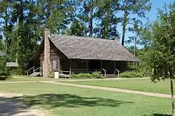 It was located in or near Fisher, Louisiana and was moved to a rural-like area in the Washington Parish Fairgrounds to be preserved. [2]