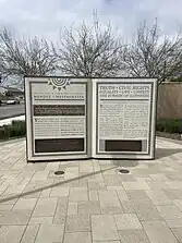 The Mendez Historic Freedom Trail and Monument opened on December 1, 2022 at 7371 Westminster Boulevard, in Westminster California.[19] It tells the story of what happened, in early 1944, when Sylvia Mendez and her brothers Gonzalo Jr. and Jerome, tried to start attending school the Westminster 17th Street School. Sylvia Mendez and her family had recently moved to Westminster and lived close by the school, but were turned away and were redirected to go to a "Mexican school."[20]