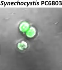 Synechocystis is a genus of unicellular, freshwater cyanobacteria in the family Merismopediaceae. It includes a strain, Synechocystis sp. PCC 6803, which is a well studied model organism.