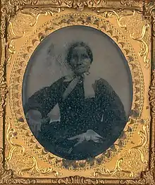 When Mariah Carter asked her father for permission to marry Charles Syphax, one of his slaves, he allowed them the unusual benefit of marrying in his Arlington mansion. Later that year, he granted Mariah seventeen acres of his Arlington estate.[lower-alpha 1] Mary Custis (1808–1873), Mariah's white half-sister, married Robert E. Lee (1807–1870), who became a Confederate general when the Civil War broke out.[5]