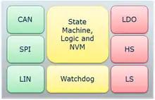 It typically includes a mixture between digital standard functionality like communication bus interfaces and analog or power functionality, denoted as smart power. Therefore SBCs are based on special smart power technology platforms.