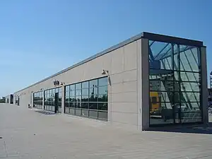 Tårnby station (Danish pronunciation: [ˈtsʰɒːnˌpyˀ stæˈɕoˀn]) is an underground railway station on the Øresund Line. It is located in Tårnby, on the island of Amager.[1] Tårnby is a municipality of its own, but its build-up parts are included in Copenhagen's urban area. Travels from this station are included in the common ticket system in and around Copenhagen. Departures take place every approximately 10 minutes in both directions.[2] The station building is owned by Sund & Bælt.[3] There are two tracks located at an island platform which is 320 metres (1,050 feet) long, around 15 metres (50 feet) wide and its tracks are located at a depth of 6 metres (20 feet) below the surrounding ground level.[3]