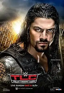 At Survivor Series, Roman Reigns defeated Dean Ambrose in a tournament final to win the vacant WWE World Heavyweight Championship, but Sheamus then cashed in his Money in the Bank contract and defeated Reigns to win the title.[7] The following night on Raw, Sheamus was scheduled to defend the championship against Reigns in a Tables, Ladders, and Chairs match at the event.[8] On the November 30 episode of Raw, Reigns received an early title match, in which he would win the title if he could defeat Sheamus in under 5:15; Reigns won the match by disqualification, but he did not win the title.[9]