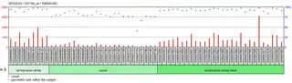This gene is highly expressed. TMEM106C is expressed 4.9 times the average gene.[7] TMEM106C has ubiquitous expression. It can be found expressed in many tissues types. Tissue types with high expression included the adrenal gland, eye, reproductive organs, cervix and blood. High expression was found using EST and GEO data.