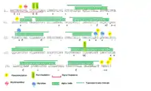 TMEM241 is composed of 9 transmembrane domains forming a hydrophobic integral component of the membrane[2] composed primarily of alpha helices.[6][7][8] TMEM241 contains a VRG4 (Vanadate Resistant Glycosylation[9]) domain with homology to the sugar transporter domain VRG4 from Saccharomyces cerevisiae (yeast).[10]