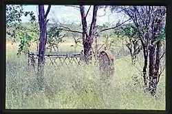Of the 23 potential burial sites identified within the cemetery, only five have headstones and only three are enclosed with iron railings. The three graves that have iron enclosures have been re-painted white in recent times. Identified graves date from between 1889 and 1904.[1]