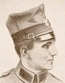After completing the course and obtaining the "full qualifications to perform service in the positions of the General Staff", he was assigned to the command of the 3rd Legions Infantry Division in Zamość as the chief of staff. On August 1, 1924, he was transferred to the 1st Division of the Polish General Staff to the position of a clerk.[4] On January 26, 1928, he was promoted to senior lieutenant – colonel on January 1, 1928, and in the 70th position in the corps of infantry officers.[5] In March 1928 he replaced Col. SG Adam Koc as the chief of staff of the Command of the Command of Corps District No. VI in Lviv.[6] During his studies at WSWoj. and during the staff service he was a full-time officer in the 23rd infantry regiment in Włodzimierz. In May 1930 he was transferred to the Border Protection Corps to the position of the commander of the regiment of the Border Defence Corps Regiment "Sarny".[7] On January 26, 1935, he was promoted to senior colonel on January 1, 1935, and was ranked 3rd in the corps of infantry officers.[8] On September 29, 1936, he became the chief of staff of the State Air Defense Inspector, Brigadier General Józef Zając. In August 1939, he was transferred to the position of the infantry commander of the 4th Infantry Division in Toruń.