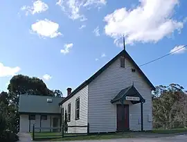 A pastoral run called Taggerty Run was established in 1846. The homestead of the run was called Taggerty House. Gold was discovered along the Acheron River in 1870, which led to the establishment of two settlements, named Acheron Lower (now known as Acheron) and Acheron Upper (now known as Taggerty). The Post Office opened on April 15, 1876 and was renamed Taggerty in 1893.[2] Acheron Upper Primary School opened in 1875. The general store opened in 1891, as did a butter factory, reflecting the area's shift from gold mining towards dairy farming. The town was given the name Taggerty in 1890 to avoid confusion with Acheron Lower.