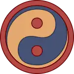 Ming period author Lai Zhide (1525–1604) simplified the taijitu to a design of two interlocking spirals with two black-and-white dots superimposed on them, became synonymous with the Yellow River Map.[3] This version was represented in Western literature and popular culture in the late 19th century as the "Great Monad",[4] this depiction became known as the "yin-yang symbol" since the 1960s.[5] The contemporary Chinese term for the modern symbol is referred to as 太極兩儀圖 "the two-part Taiji diagram".