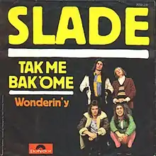- ↑ 45cat - Slade - Take Me Bak 'Ome / Wonderin' Y - Polydor - UK - 2058 231
