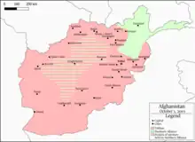 ![]() Military situation in Afghanistan in 2000, between the Taliban (green) and the Northern Alliance (blue) | |||||||||