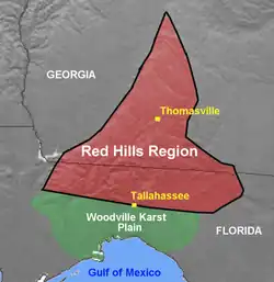 Tallahassee sat in "Middle Florida", the part of the Territory of Florida between the Appalachicola and Suwannee rivers. In the 1830s Middle Florida was the most populous and prosperous part of Florida. The heart of Middle Florida and the adjacent part of Georgia formed the "Red Hills Region", which held many plantations producing cotton and tobacco. Export of cotton from the region was difficult. Cotton bales were brought into Tallahassee, from which they were carried in wagons across the deep sand of the Woodville Karst Plain to ports on the St. Marks River. The Legislative Council of the Territory of Florida authorized the Leon Rail-Way Company[lower-alpha 1] in 1831 to build a railroad from Tallahassee to the St. Marks River. When that company failed to organize, the Legislative Council then authorized the Leon Railroad Company, which forfeited its charter after it was unable to raise the required capital.[1]