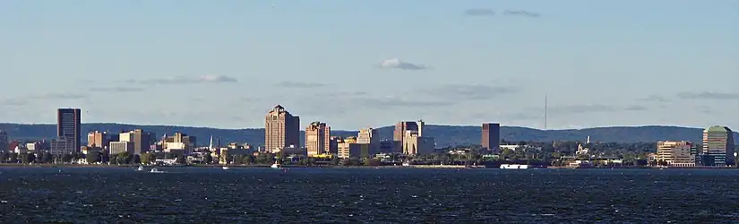 The New Haven skyline as seen from New Haven Harbor in 2007 before the completion of 360 State Street