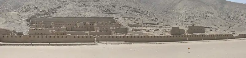 Tambo Colorado (Quechua: Pukatampu) is a well-preserved Inca adobe complex near the coast of Peru, also known under the Quechua names Puka Tampu ("red resting place"), Pukallaqta ("red place") or Pukawasi ("red house").