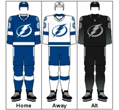 - ↑ Damian Cristodero (January 23, 2011). "Tampa Bay Lightning's new uniforms sound as if they will include a simple, classic design". St. Petersburg Times. Retrieved January 23, 2011.