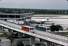 An automated monorail system also once connected the main terminal on Level 5 to the long-term parking garage,[19] stopping at each elevator bank in both buildings. It was installed in 1991 when the long-term parking garage was built.[10] It used six Bombardier UM III vehicles, which are also used on the Jacksonville Skyway.[1]
