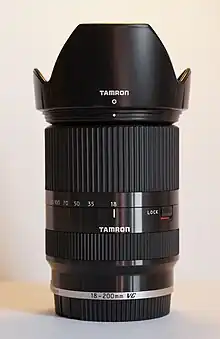 The Tamron 18-200mm F/3.5-6.3 Di III VC is an APS-C superzoom lens announced by Tamron on December 8, 2011. It can be mounted on Canon EOS-M and Sony E-mount (NEX) camera bodies.