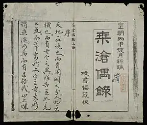 The Tang thương ngẫu lục (chữ Hán: 桑滄偶錄, Random Record of Great Changes, 1806) is a Chinese-language work by Vietnamese Confucian scholars Phạm Đình Hổ and Nguyễn Án.[1] The work documents religious and social events of 18th-century Vietnam.[2][3]