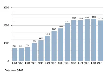 - ↑ "Popolazione Residente al 1° Gennaio 2018". Italian National Institute of Statistics. Retrieved 16 March 2019.